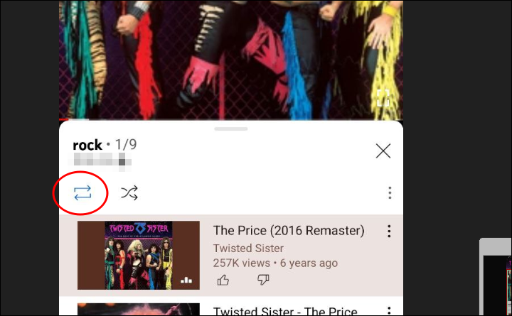 모바일에서도 생성된 재생 목록을 클릭하여 모두 재생한 후 똑같이 반복 재생 설정을 할 수 있습니다.