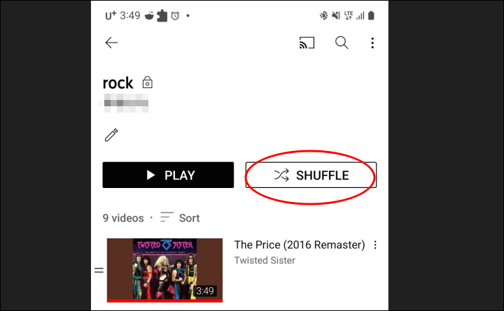 무작위 재생도 가능하며 플레이리스트를 전체 재생하는 [모두 재생] 옆에 [셔플] 버튼을 볼 수 있습니다.